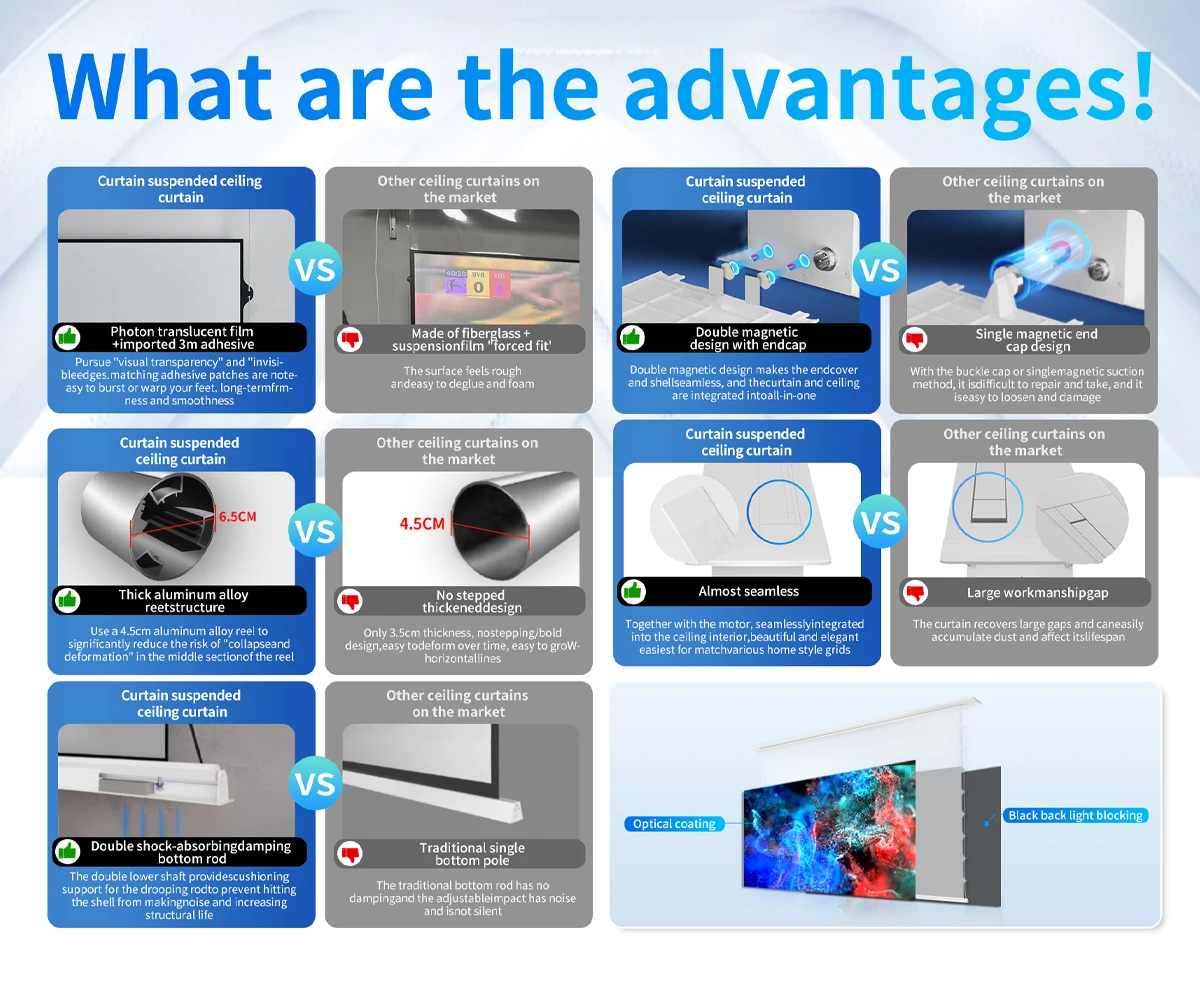 ผลิตภัณฑ์หลัก:หน้าจอโปรเจคเตอร์, หน้าจอโฮมเธียเตอร์, หน้าจอเฟรมคงที่, การฉายแบบถอดออกได้, หน้าจอฉายภาพแบบใช้มอเตอร์